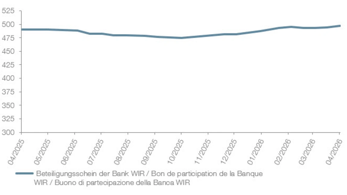 Der Beteiligungsschein der WIR Bank Genossenschaft ist ein ausschüttungsberechtigtes Wertrecht, das zu den Nebenwerten gehört. In den letzten 10 Jahren konnte regelmässig eine Ausschüttung von rund 10 CHF pro Anteil ausgerichtet werden. Die Verwahrung der Beteiligungsscheine erfolgt in einem kostenlosen Kundendepot bei der Bank WIR.